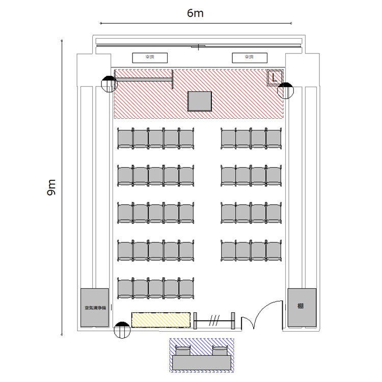 ※プロジェクターを設置する場合は表記の最大定員を収容できない場合がございます。