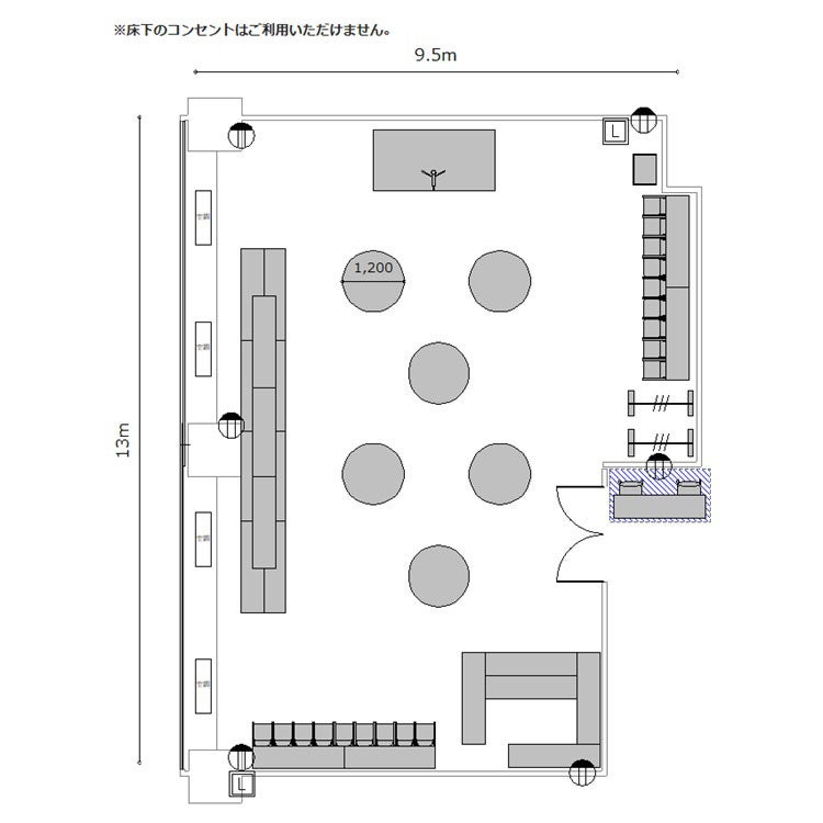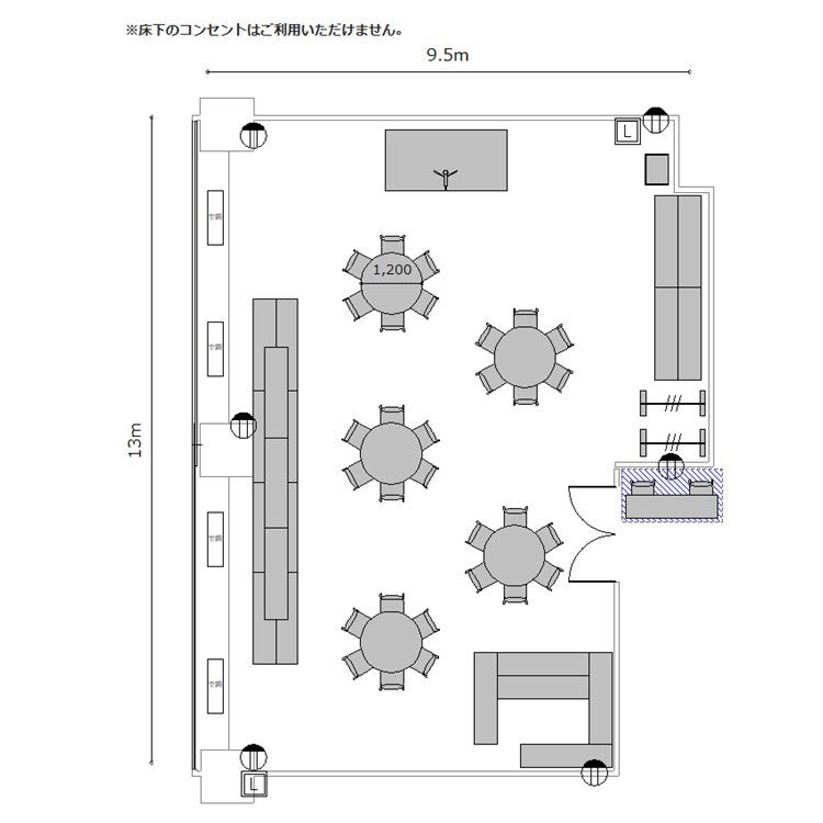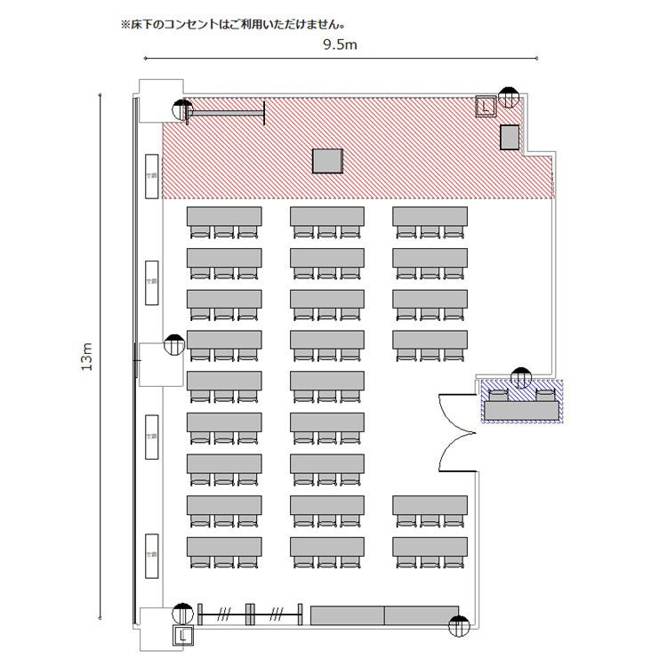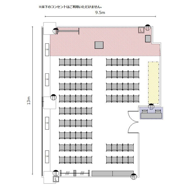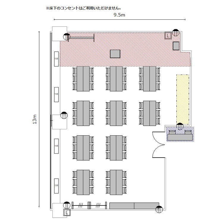※オプションサービス・備品・ケータリングサービスのお申し込み、レイアウトを変更される場合は、ご利用日の3営業日前までにご連絡ください。
