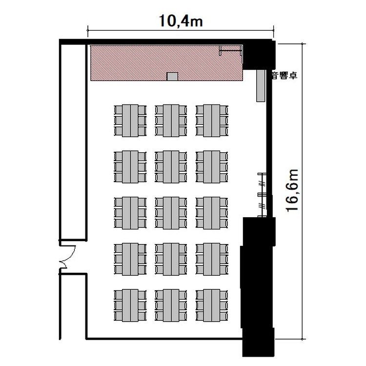 常設備品 ホワイトボード:1 有線マイク:2 演台:1 モニター (90インチ~):1 モニター(70~79インチ):1 電源タップ:5