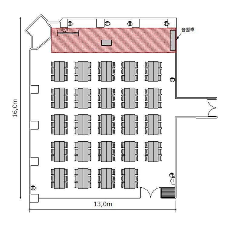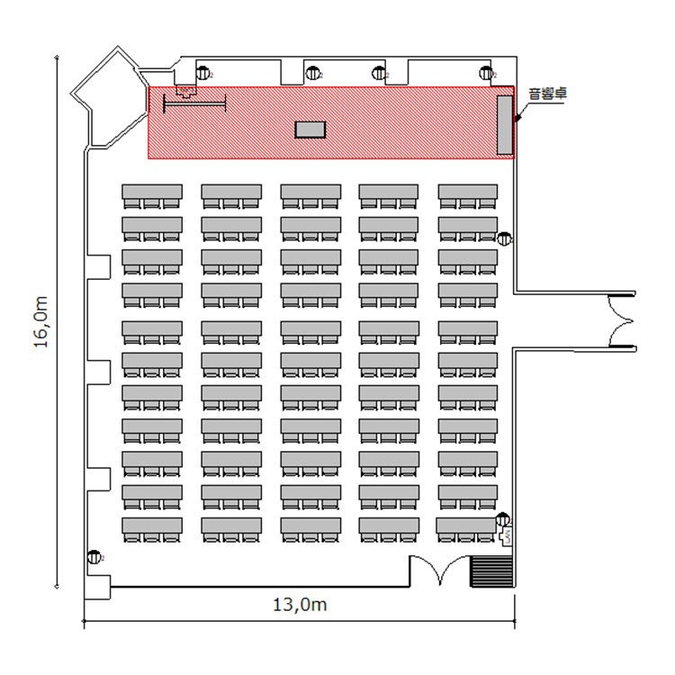 ※プロジェクターを設置する場合は表記の最大定員を収容できない場合がございます。