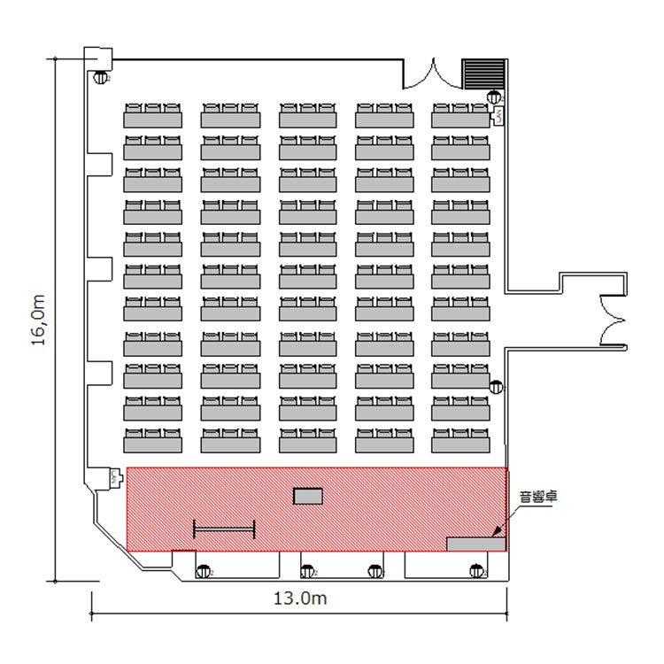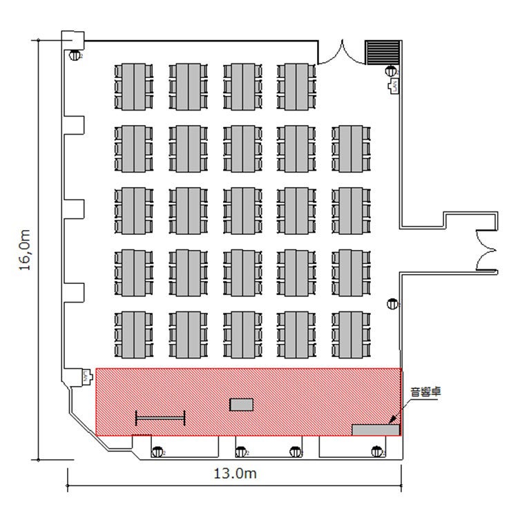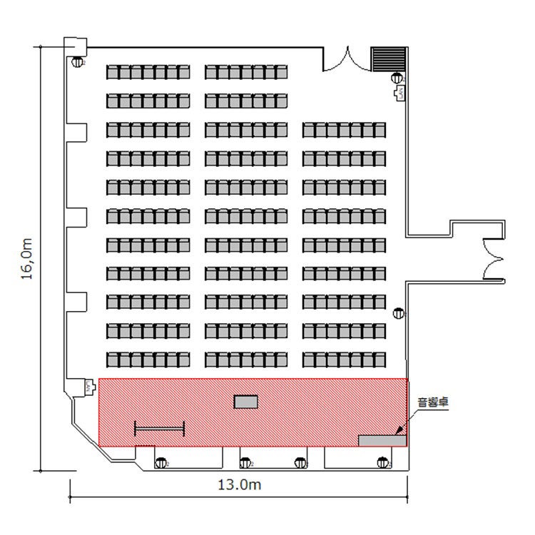 ※プロジェクターを設置する場合は表記の最大定員を収容できない場合がございます。