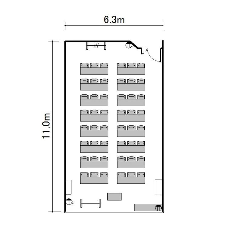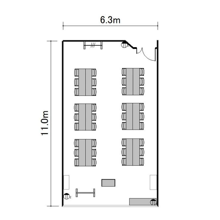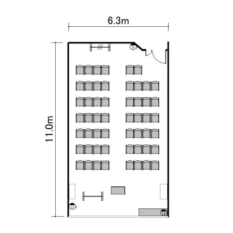 ※プロジェクターを設置する場合は表記の最大定員を収容できない場合がございます。
