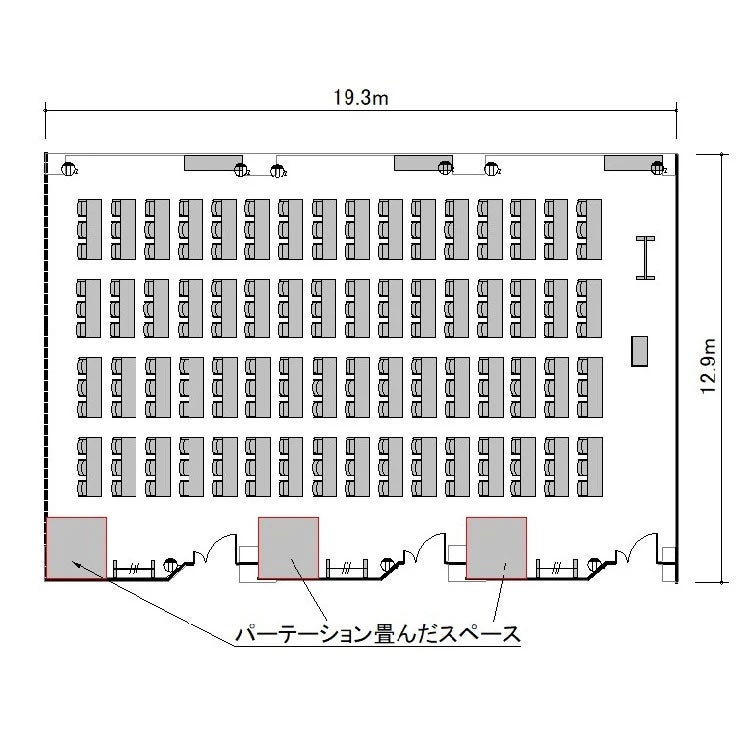 ※プロジェクターを設置する場合は表記の最大定員を収容できない場合がございます。