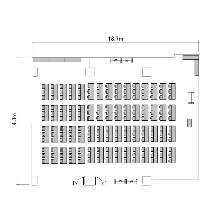 ※プロジェクターを設置する場合は表記の最大定員を収容できない場合がございます。