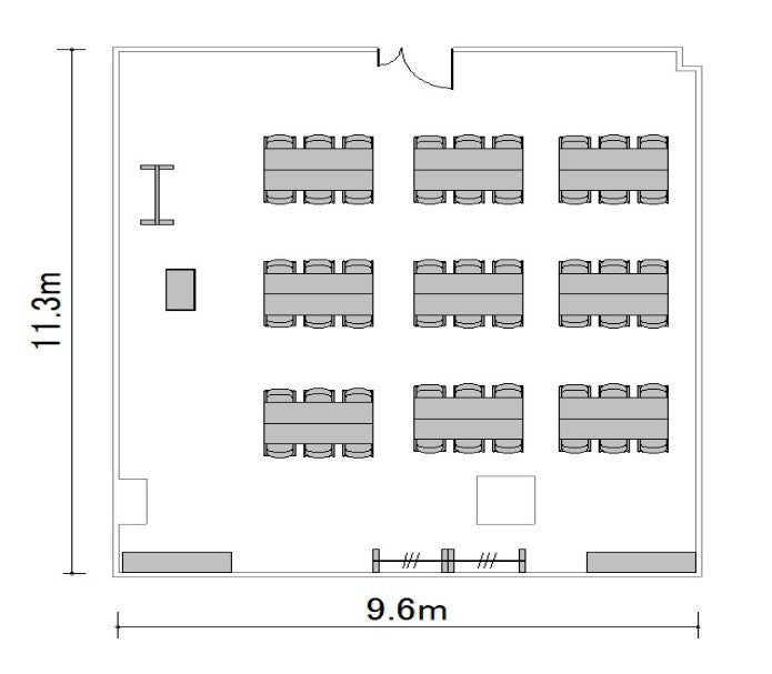 ※プロジェクターを設置する場合は表記の最大定員を収容できない場合がございます。