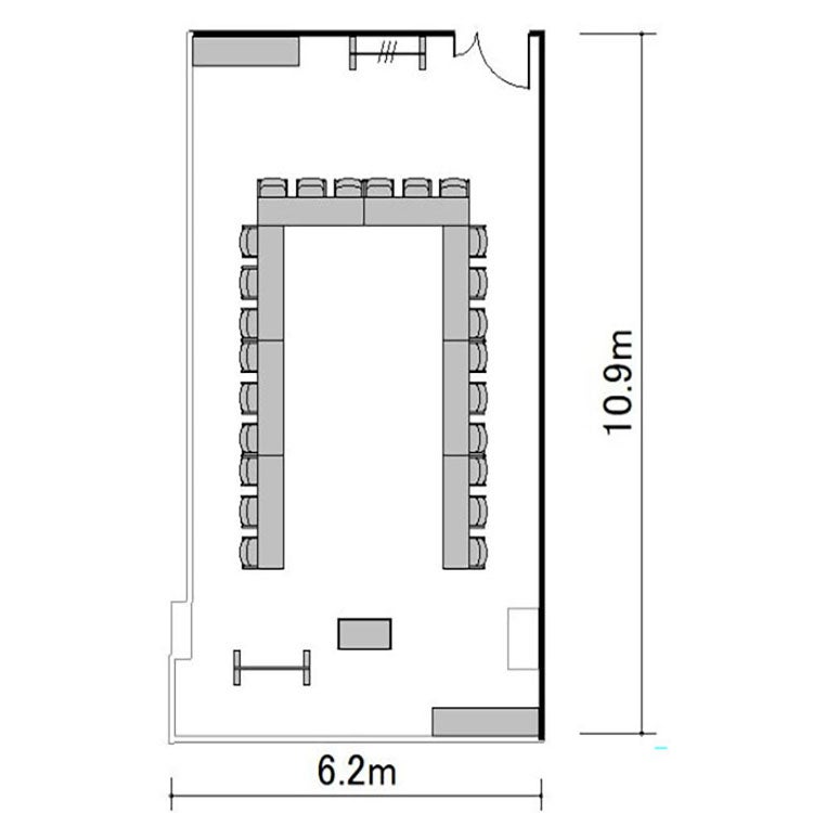 ※プロジェクターを設置する場合は表記の最大定員を収容できない場合がございます。
