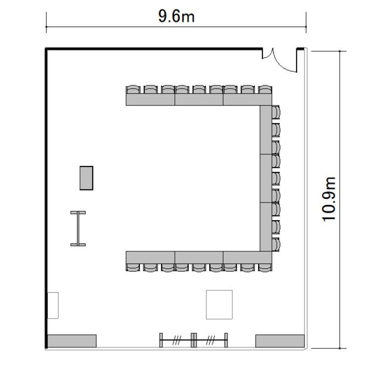 ※プロジェクターを設置する場合は表記の最大定員を収容できない場合がございます。
