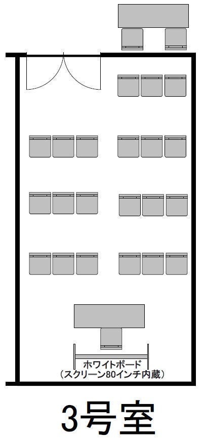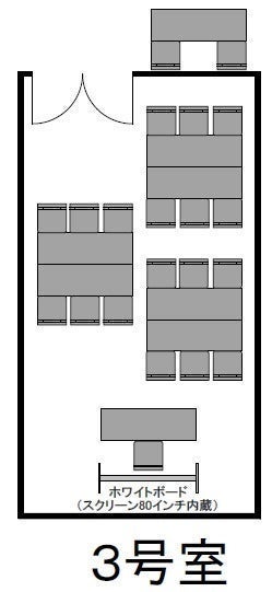※ホワイトボード(スクリーン80インチ付き)1台が備え付けとなっております。 スクリーンとホワイトボードは同時に使用することができません。 ※有線・無線共にインターネットがご使用いただけます。 通信速度に関しては、回線の混雑状況により繋がらない事や速度低下が発生することがあります。