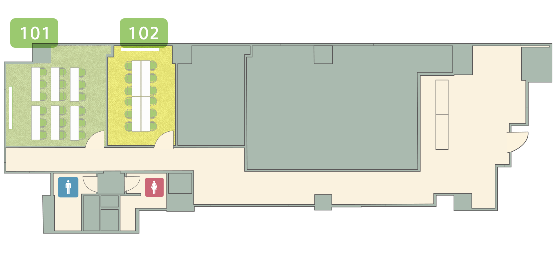 お部屋代については、原則ご利用日の1週間前までにお願いしております。 お支払いサイトなどはご相談ください。 |