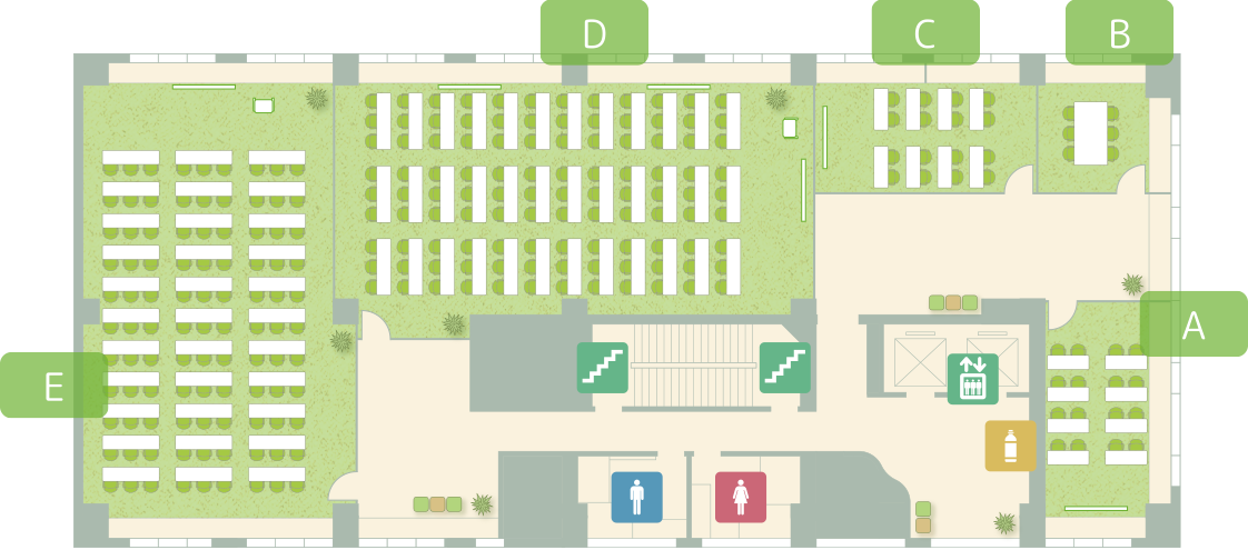 | おすすめ用途 | イベント会場、展示会、学会、懇親会、社員研修、セミナー、試験会場 等 |