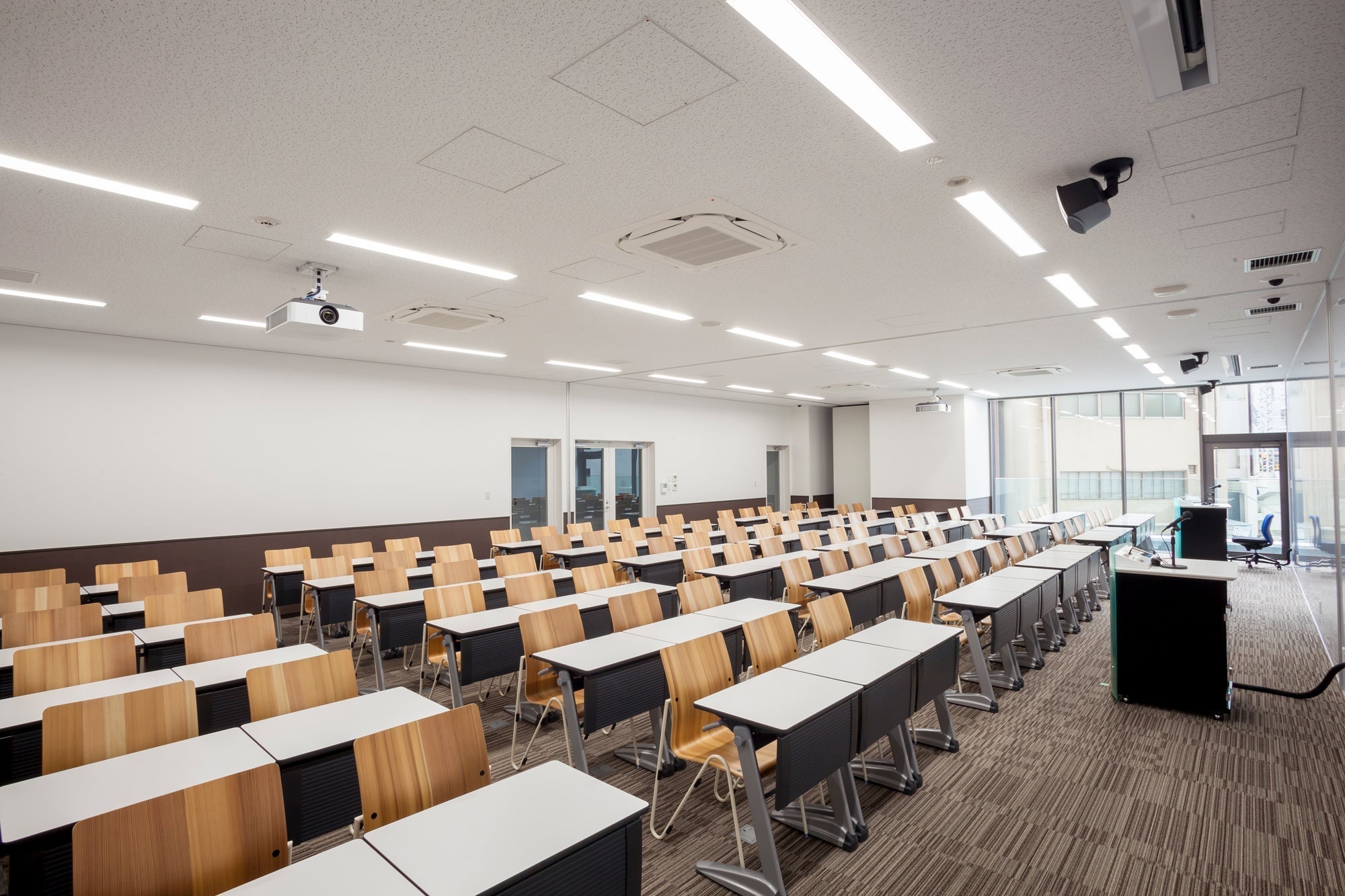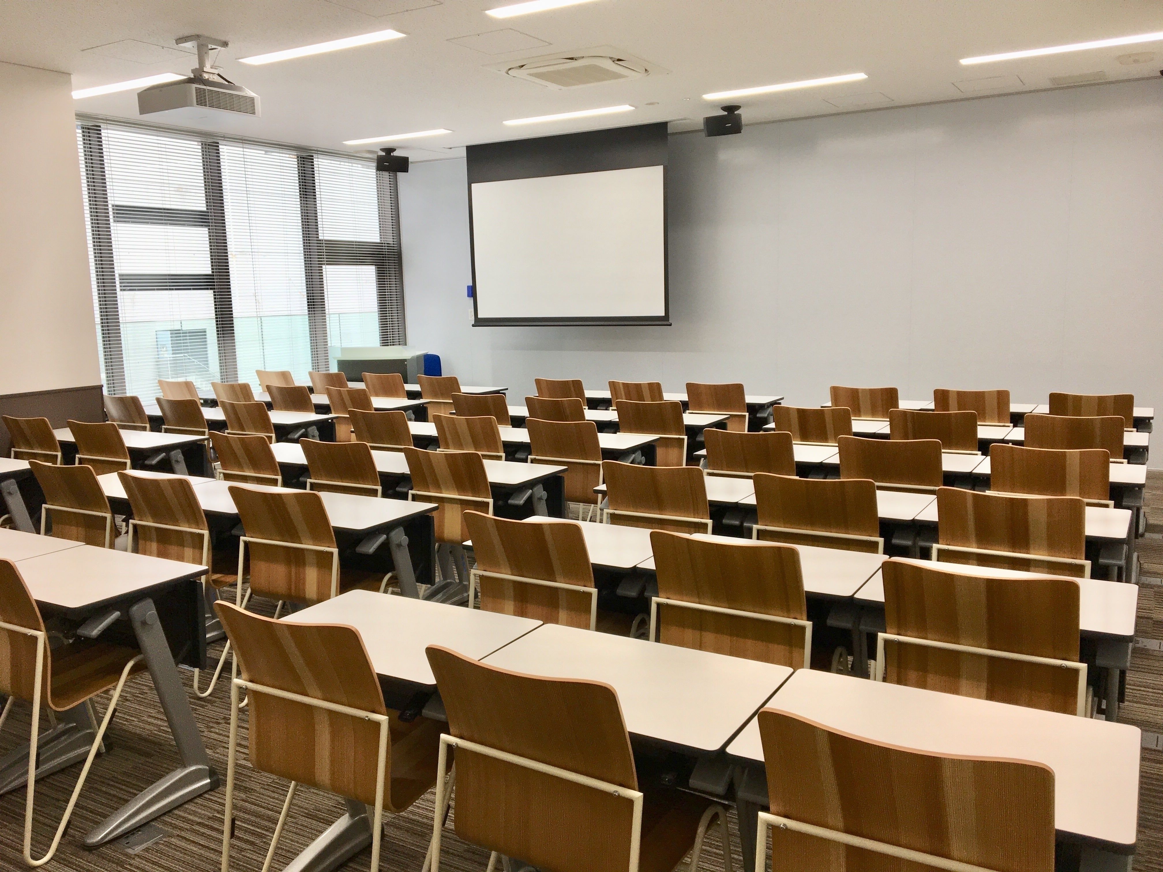 | おすすめ用途 | セミナー、講演会、学会、会社説明会などに是非ご利用ください。 机・椅子は可動式。ホワイトボード(前側壁面)、プロジェクター設置。 |