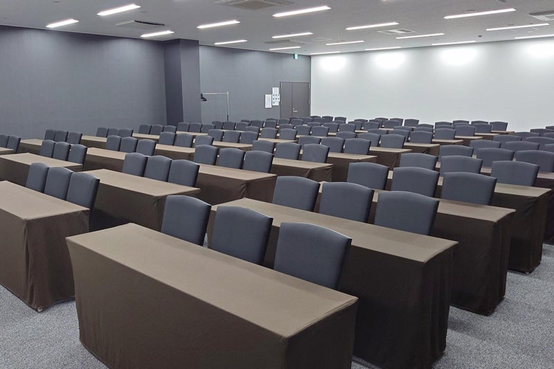 【備品】 テーブル:44 イス:132 演台:1 ホワイトボード:1 ハンガーラック:2 有線マイク:2 掛け時計:1 電源タップ:5 【設備】 ダウンライト対応 電気容量:15A※共有系統のみ(機材使用状況によって変動有) LAN口数:2口 外受付:可 窓:あり(開閉/不可) ※簡易ステージ1台無料にてご用意出来ます。 ※スクール形式の定員以上の机、椅子は追加料金が別途発生いたします。