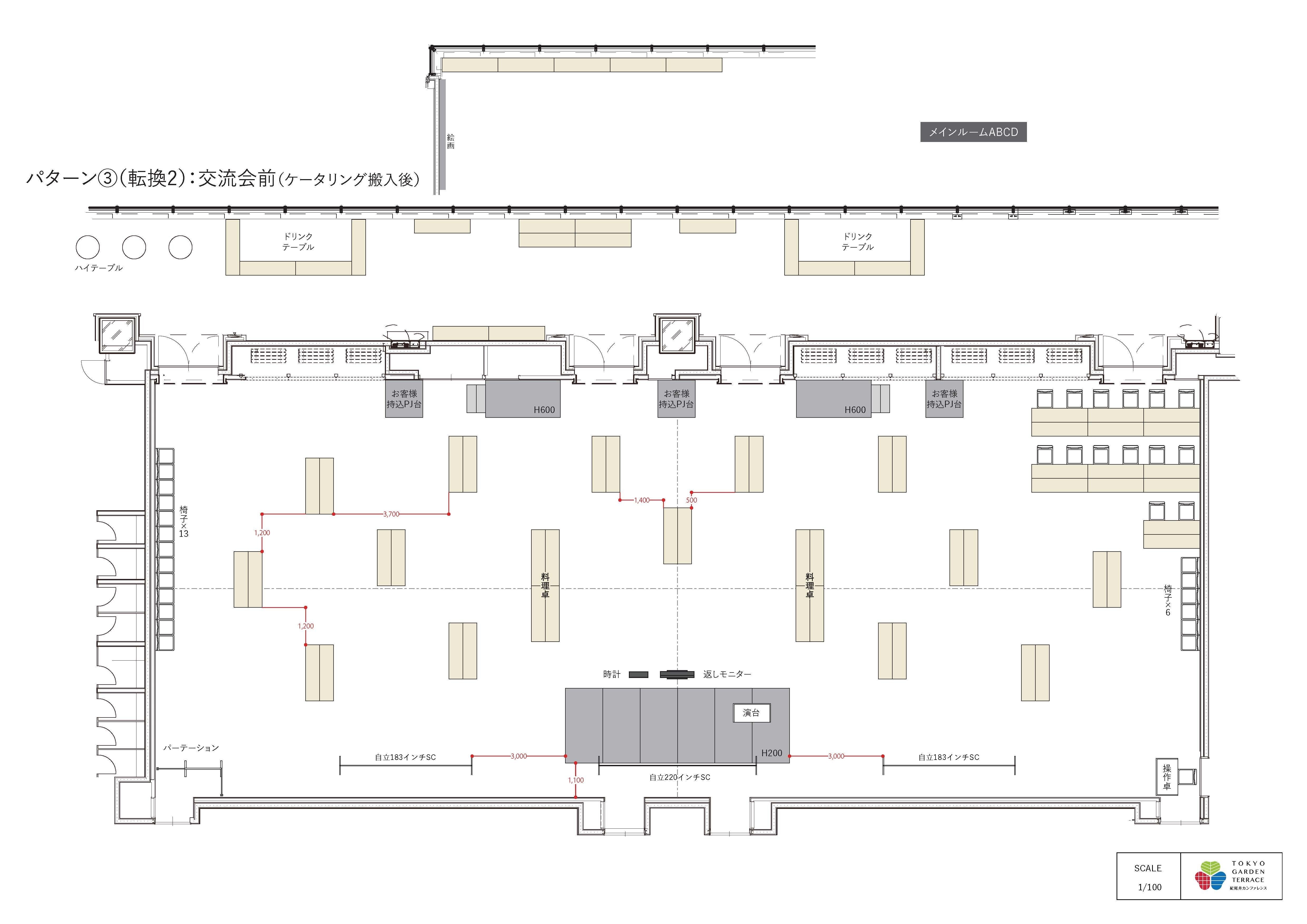 4連結470㎡(約500名)の会場。約200㎡の明るく開放的なホワイエを占有可能