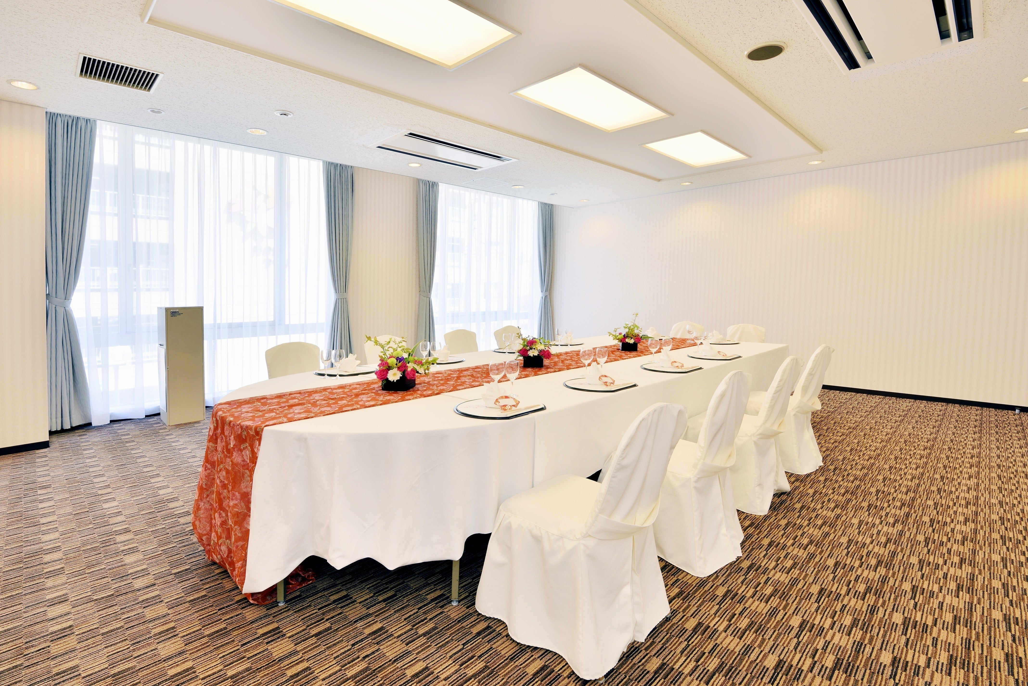 窓があり、開放感のある会議室です。各種会議、セミナー、懇親会の他、控室でのご利用にもお勧めです。
