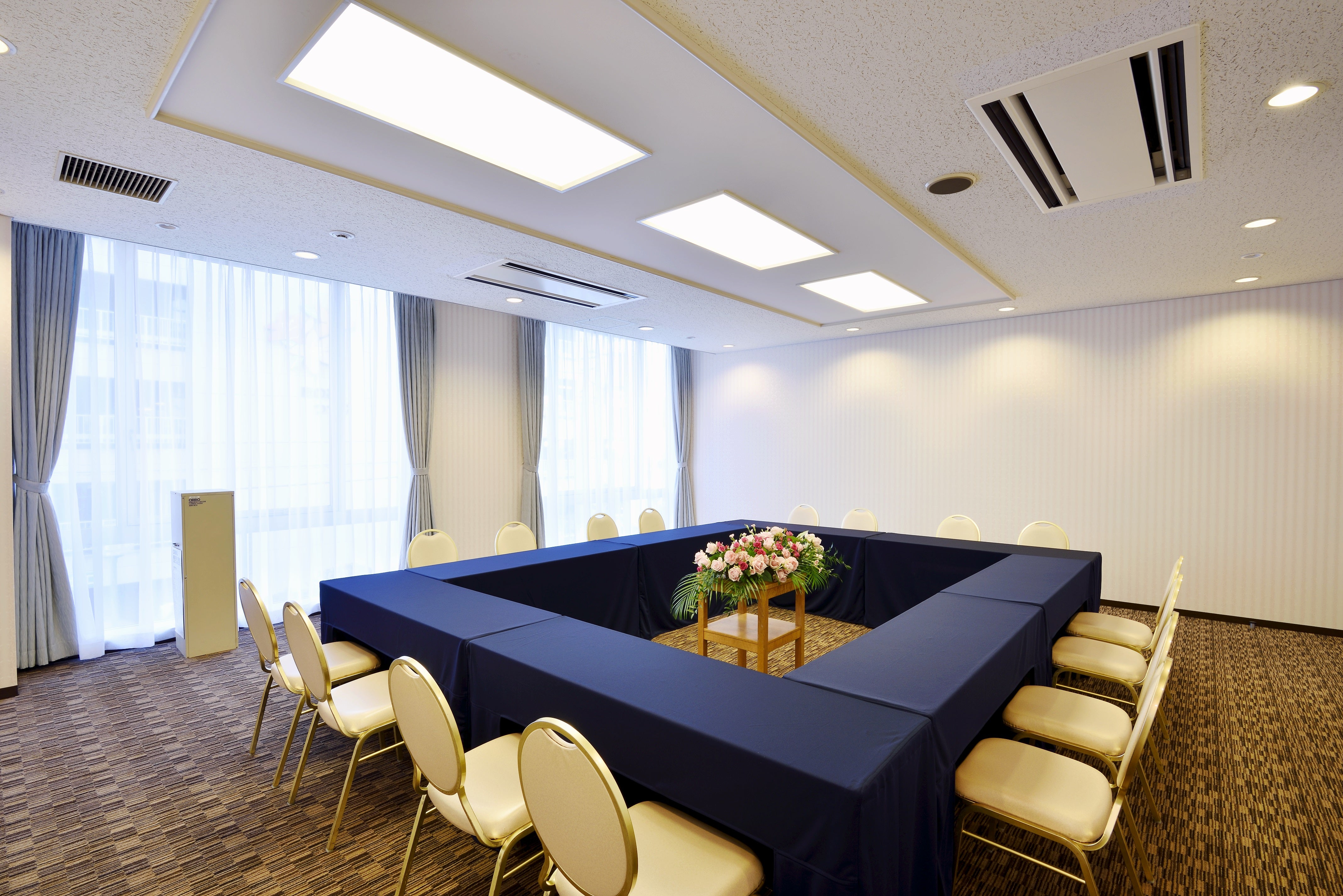 窓があり、開放感のある会議室です。各種会議、セミナー、懇親会の他、控室でのご利用にもお勧めです。