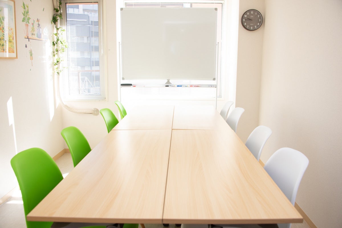 【アクセス】横浜駅から徒歩2分!アクセス抜群です! 【利用用途】完全個室のため、会議やセミナー、研修、など、幅広い用途で利用可 【収容人数】最大12名収容可能 【設備】椅子(12名分)、テーブル(4台)、ホワイトボード(1台)、プロジェクター、無料Wi-Fi、その他事務用品 【周辺】コンビニ・飲食店があります