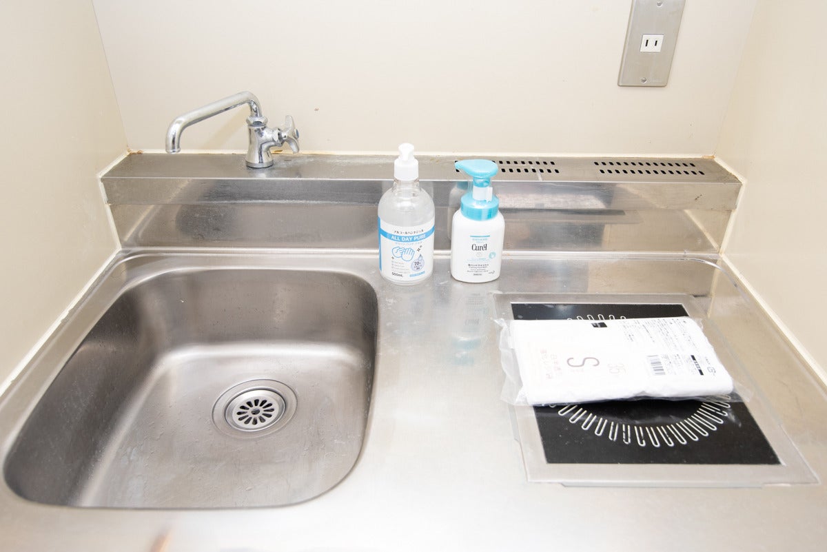 石鹸、アルコール除菌液、消毒スプレー、ウェットティッシュ、窓も開きます。