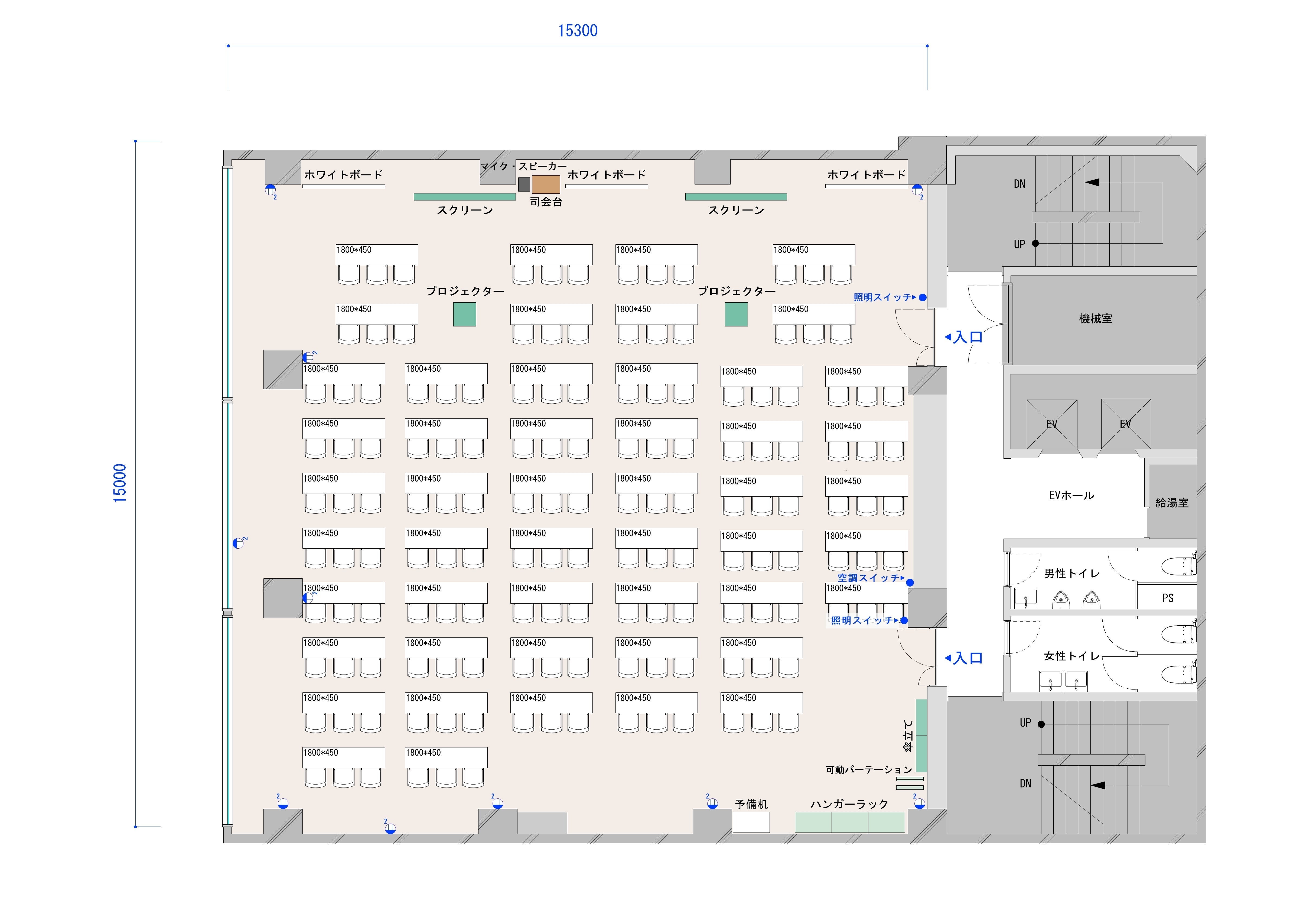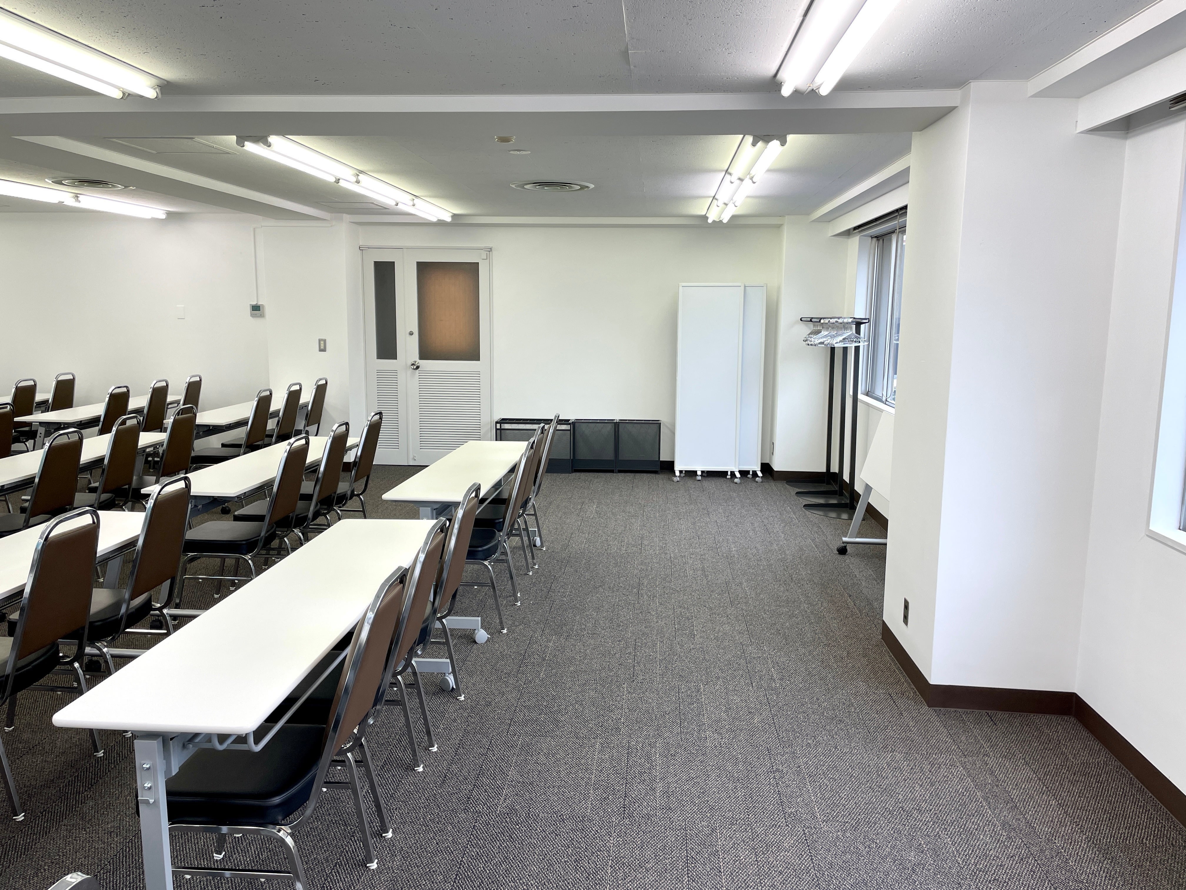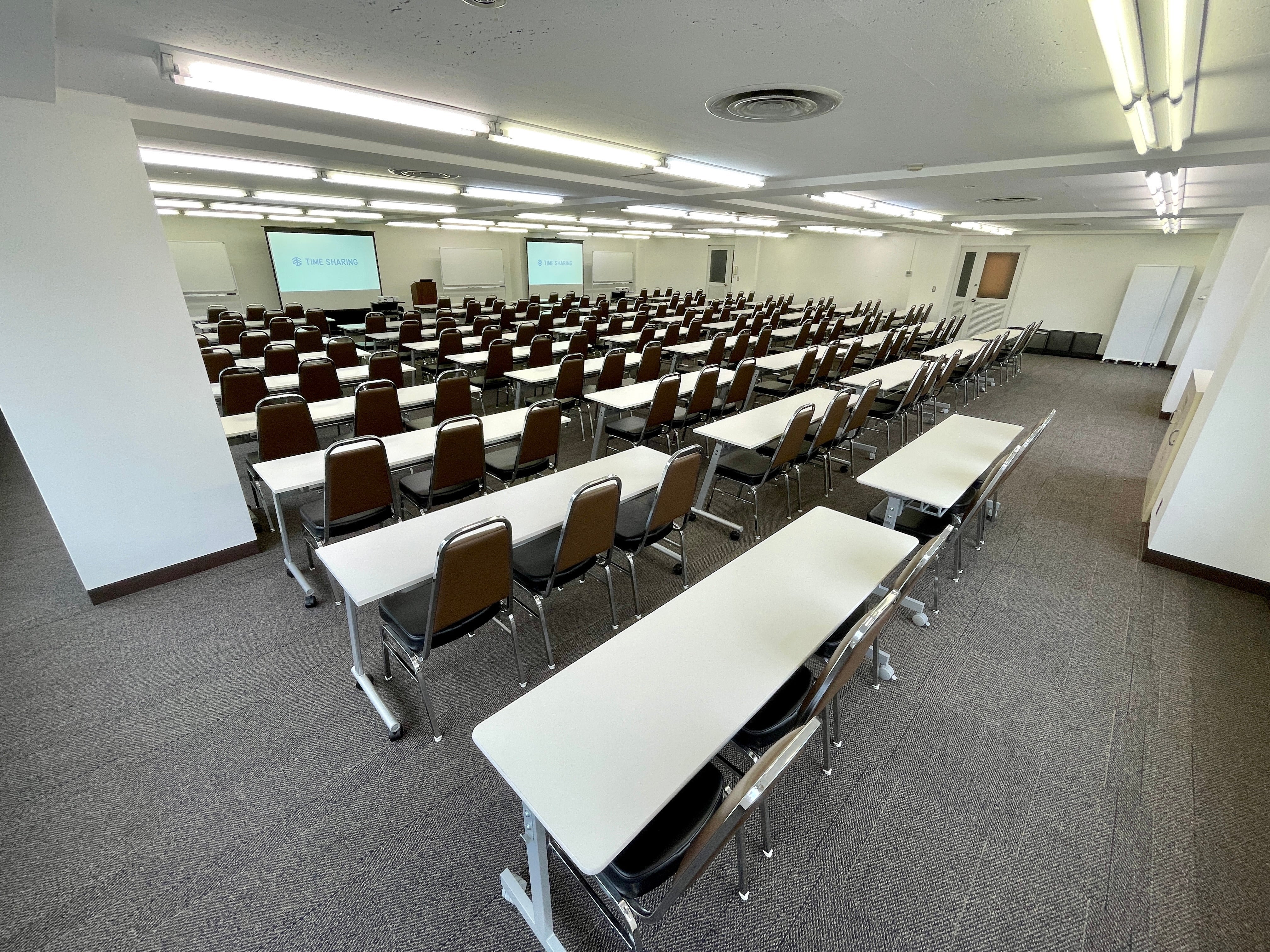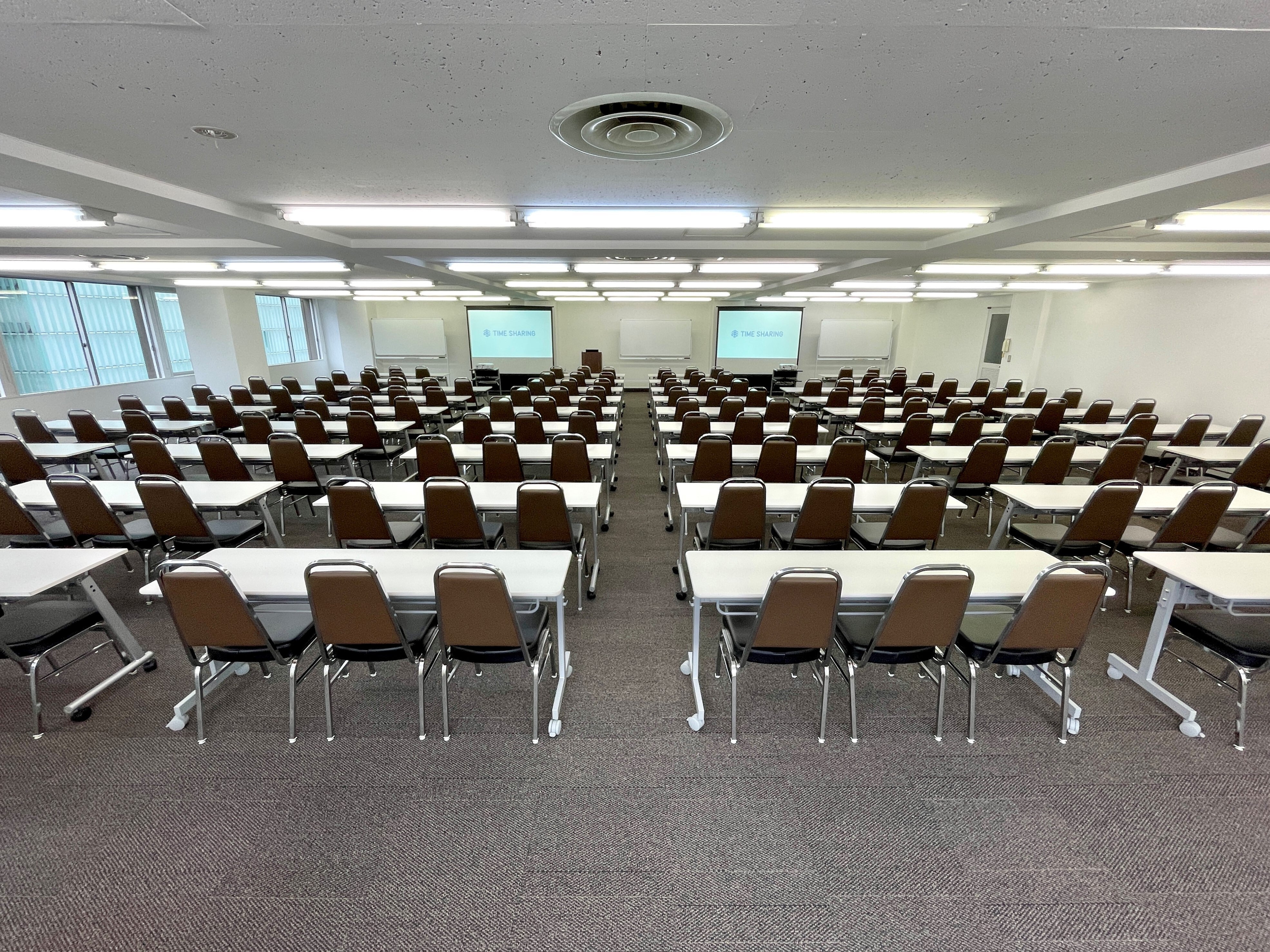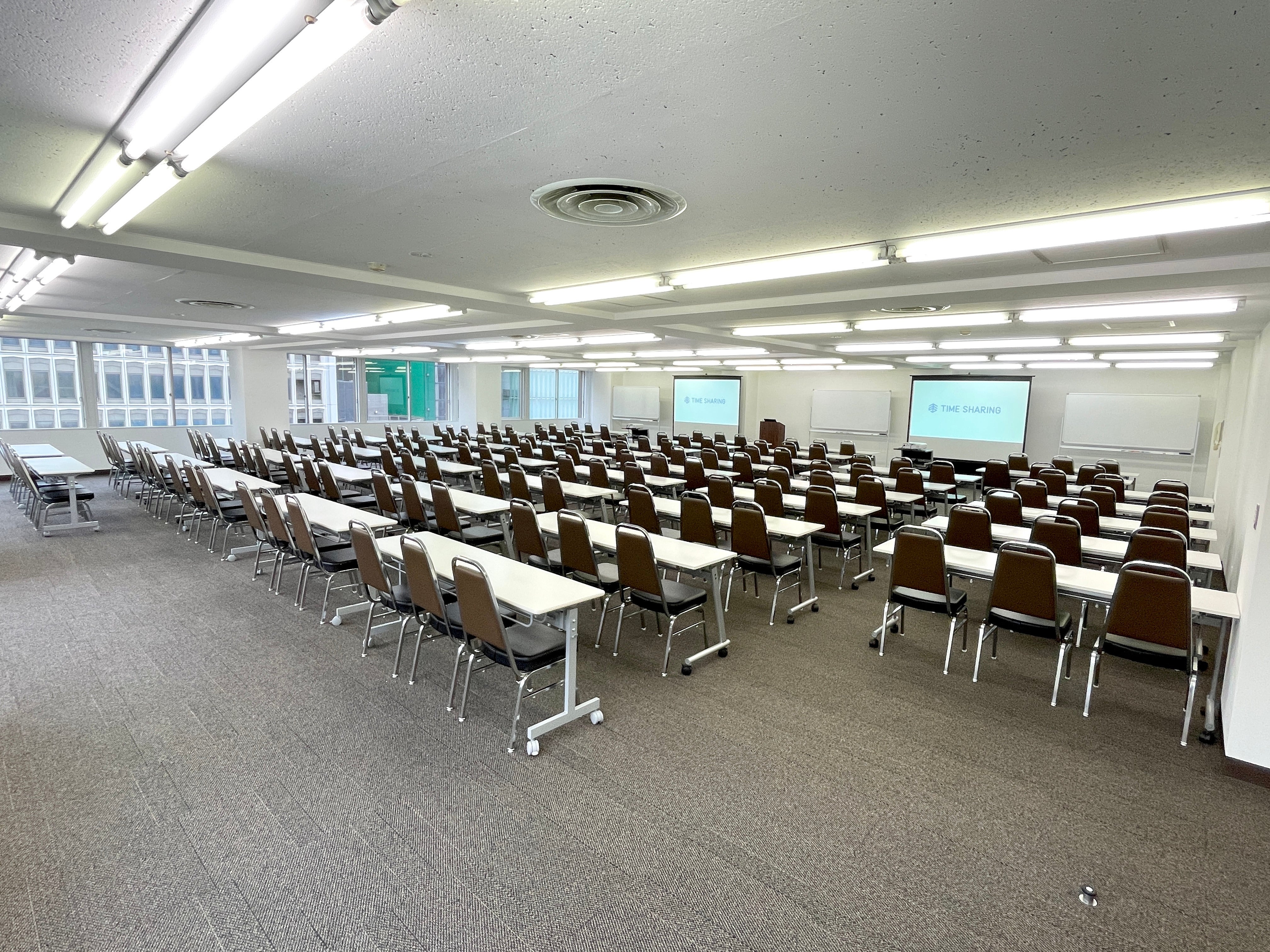 スペースは建物7階のワンフロア貸切なので周りを気にせずご利用可能。 大人数での講演会やセミナーに最適!備品は全て無料です。 室内の椅子150脚は全てクッション付きの椅子なので長時間のご利用でも快適にお過ごしいただけます! フロア内に男女別トイレがあるので大人数でも安心♪ 窓を開けて換気可能です。