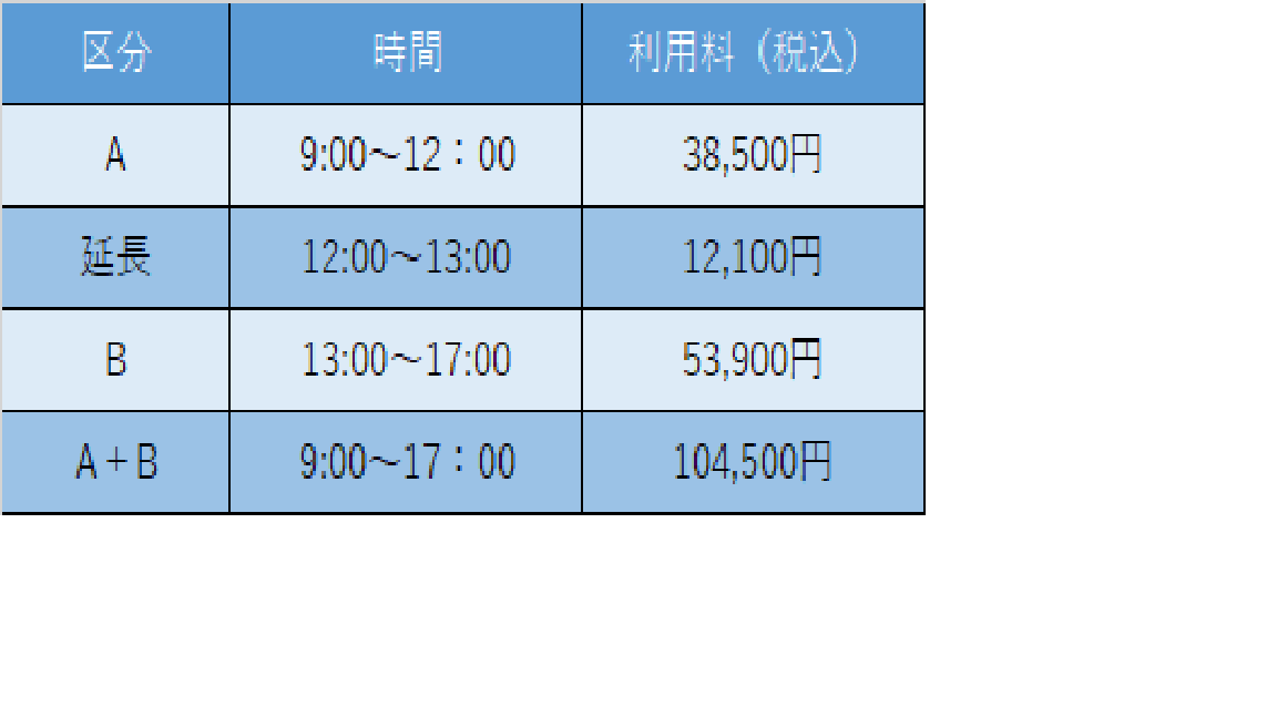 | キャンセルについて | 使用開始日の5日前から前日までのキャンセルは利用料の50%とし、当日のキャンセルは利用料の100%とします。 |