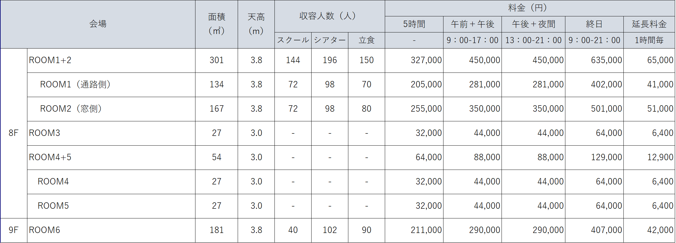 | 会場利用可能時間 (営業時間) |