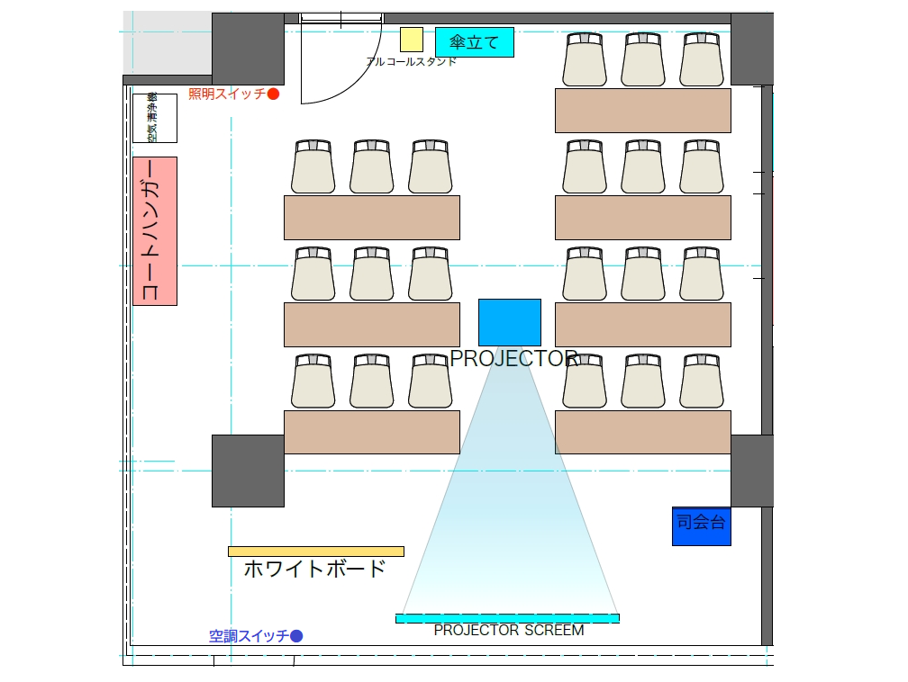 スタッフが会場の使い方(鍵の解施錠方法やプロジェクター・Wi-Fiの接続方法など)をご案内いたします。