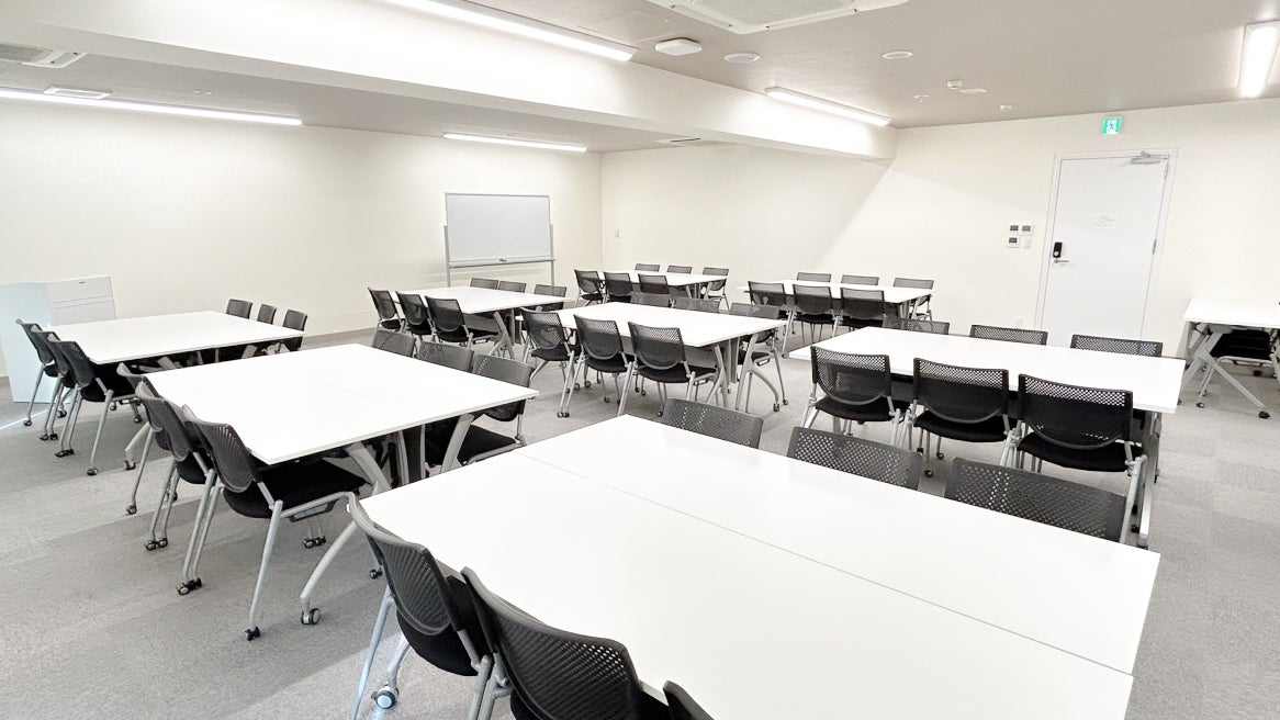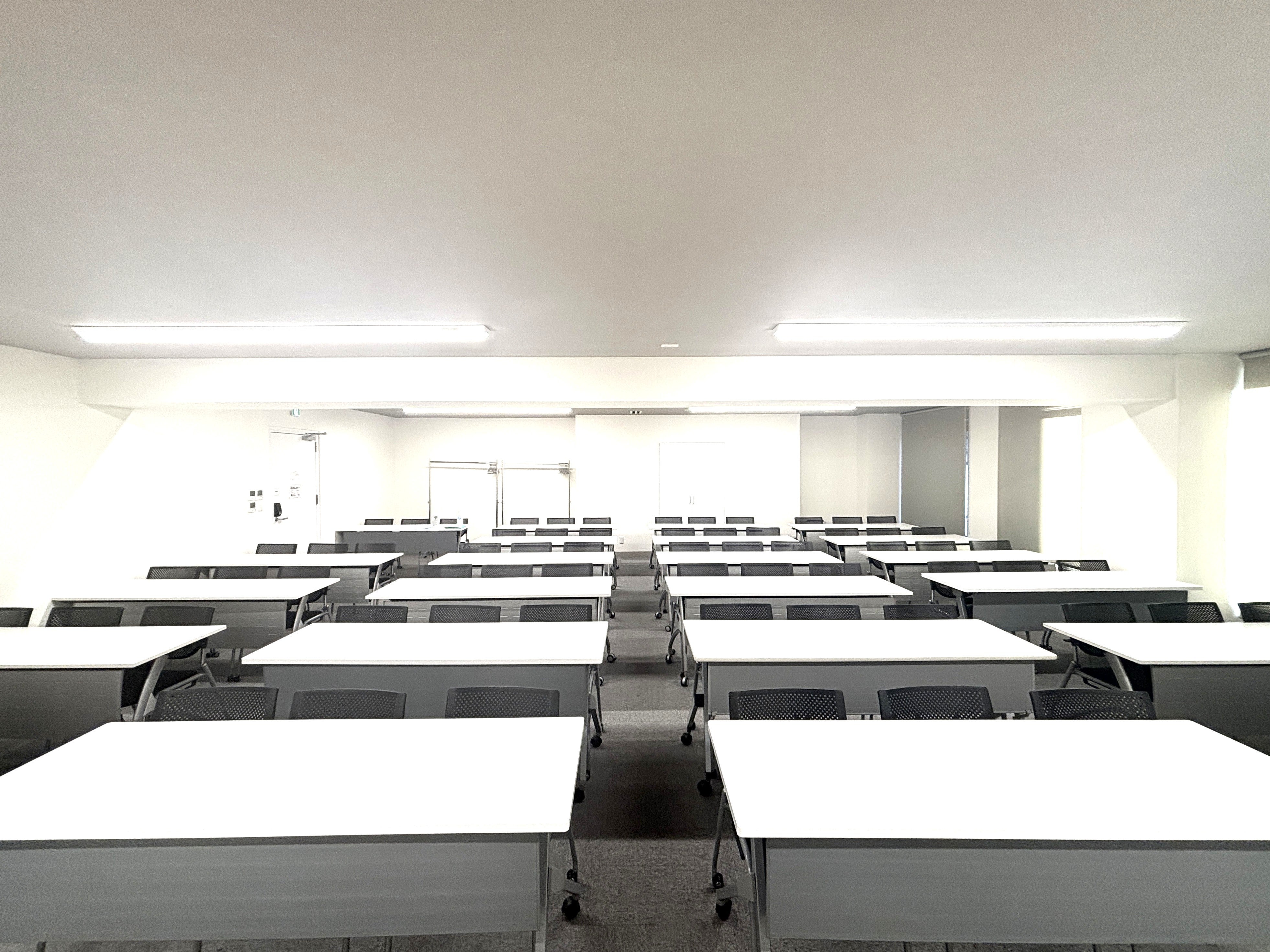 白を基調とした明るく清潔感のある空間 試験や研修などのフォーマルなシーンはもちろん、懇親会などカジュアルな用途でも安心してご利用いただけます。 【ビジネスユースに特化】 ・マイクなど必要な備品のみ追加注文。予算を抑えてご利用いただけるお部屋です。 ・レイアウト依頼可 ・荷物の事前受取・発送可 ・飲食の持ち込みOK 【周辺】 コンビニ徒歩1分/ヤマト運輸営業所 徒歩30秒/カフェ徒歩3分