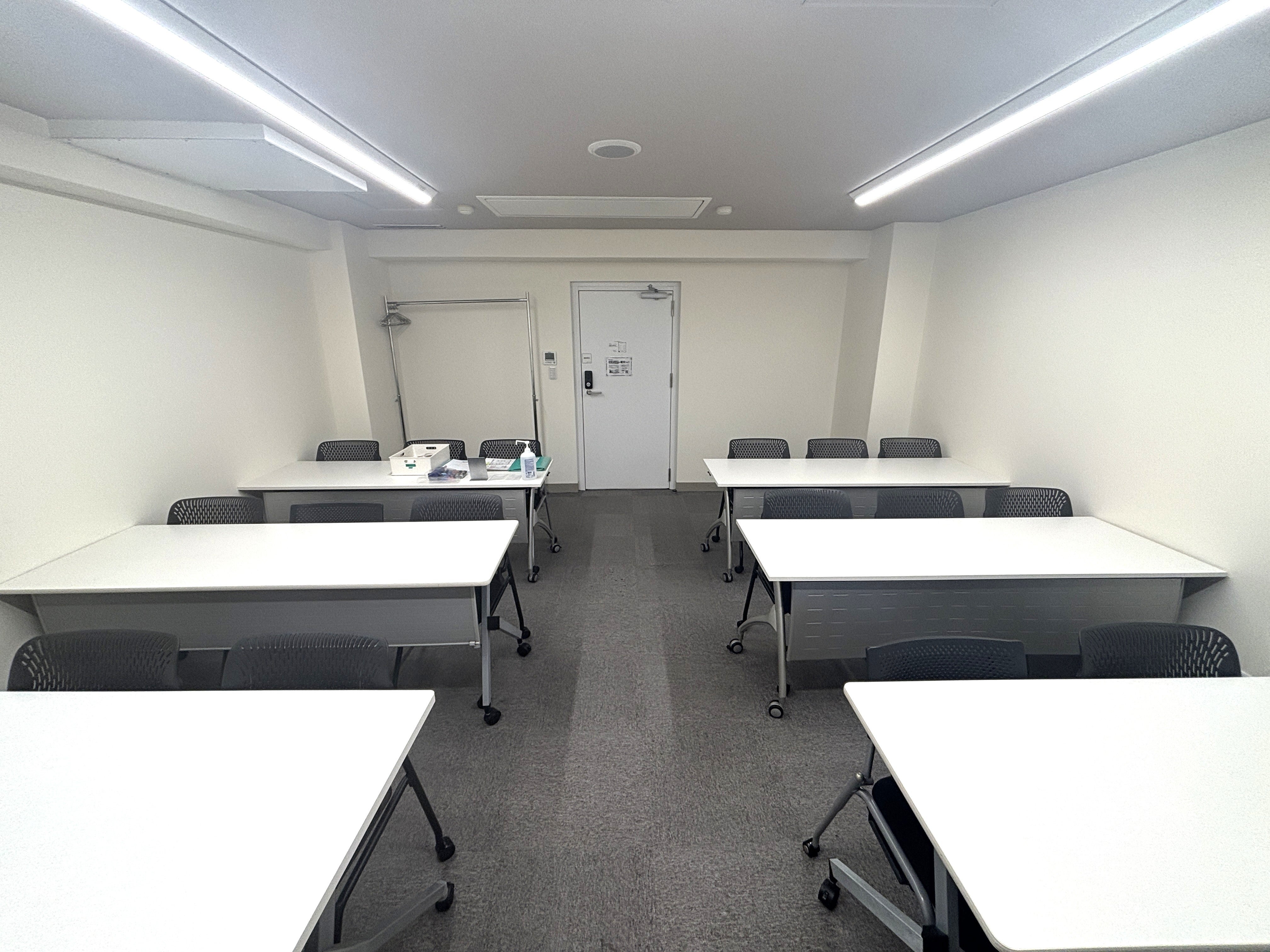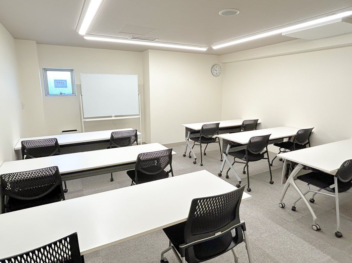 白を基調とした明るく清潔感のある空間。 試験や研修などのフォーマルなシーンはもちろん、懇親会などカジュアルな用途でも安心してご利用いただけます。 【ビジネスユースに特化】 ・プロジェクターなど必要な備品のみ追加注文。予算を抑えてご利用いただけます。 ・レイアウト依頼可 ・荷物の事前受取・発送可 ・飲食の持ち込みOK 【周辺】 コンビニ1分/ヤマト運輸営業所30秒/カフェ3分