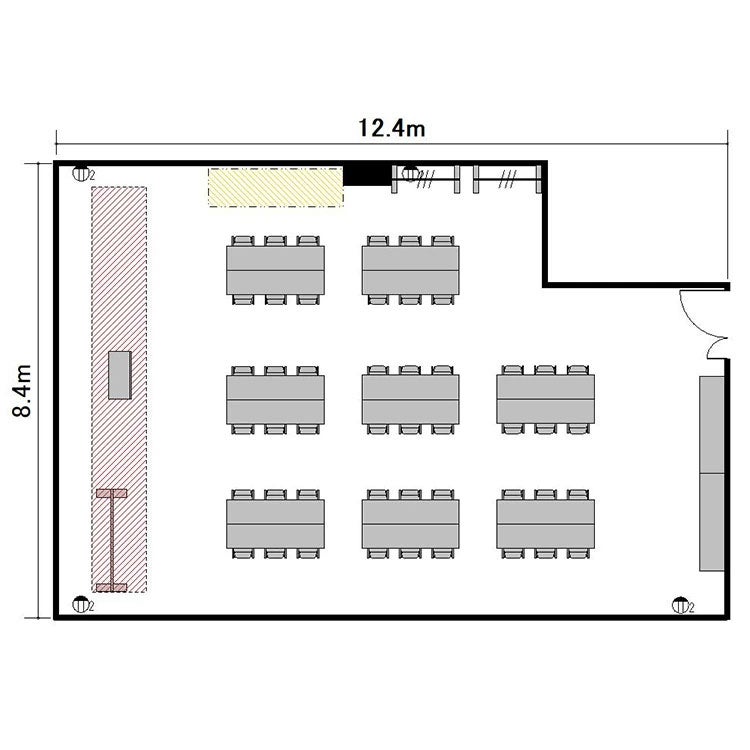 ※プロジェクターを設置する場合は表記の最大定員を収容できない場合がございます。