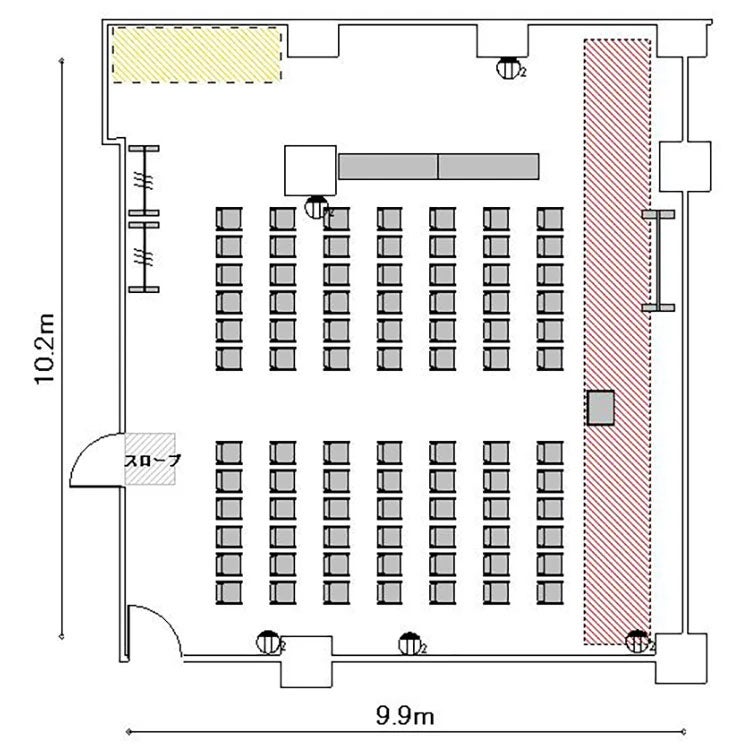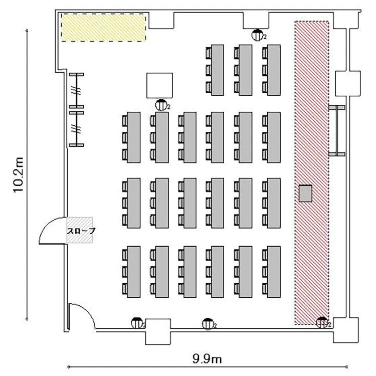 ※プロジェクターを設置する場合は表記の最大定員を収容できない場合がございます。