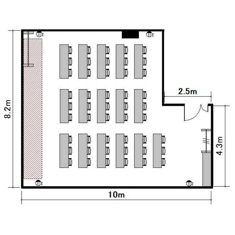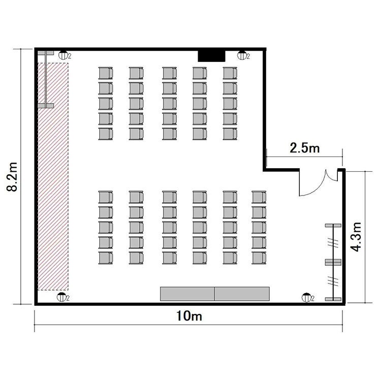 ※プロジェクターを設置する場合は表記の最大定員を収容できない場合がございます。