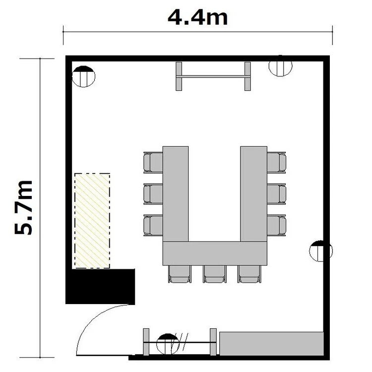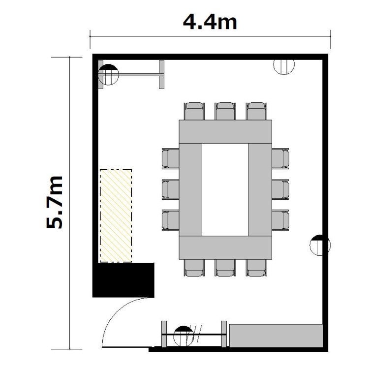 ※HPに記載のレイアウト(シアターを除く)は無料でご用意いたします。変更をご希望の場合は、お部屋規模に応じた変更料が発生いたします。但し本会場のレイアウトは窓向きスクールに限り、レイアウト変更料の対象外となります。