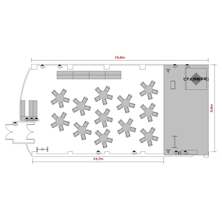 ※飲食物の持込みは原則ご遠慮いただいております。持込みご希望の方は、別途持込料及び清掃料を頂戴する形でご相談を承ります。