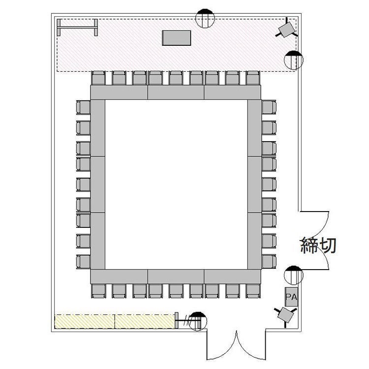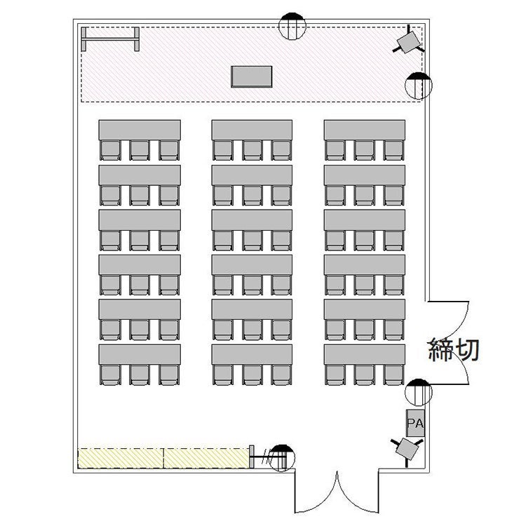 ※レイアウト変更(余剰什器は室外保管)とシアターレイアウト変更(余剰什器は室外保管)は会場によってはご利用いただけない場合がございます。詳しくはお問い合わせください。