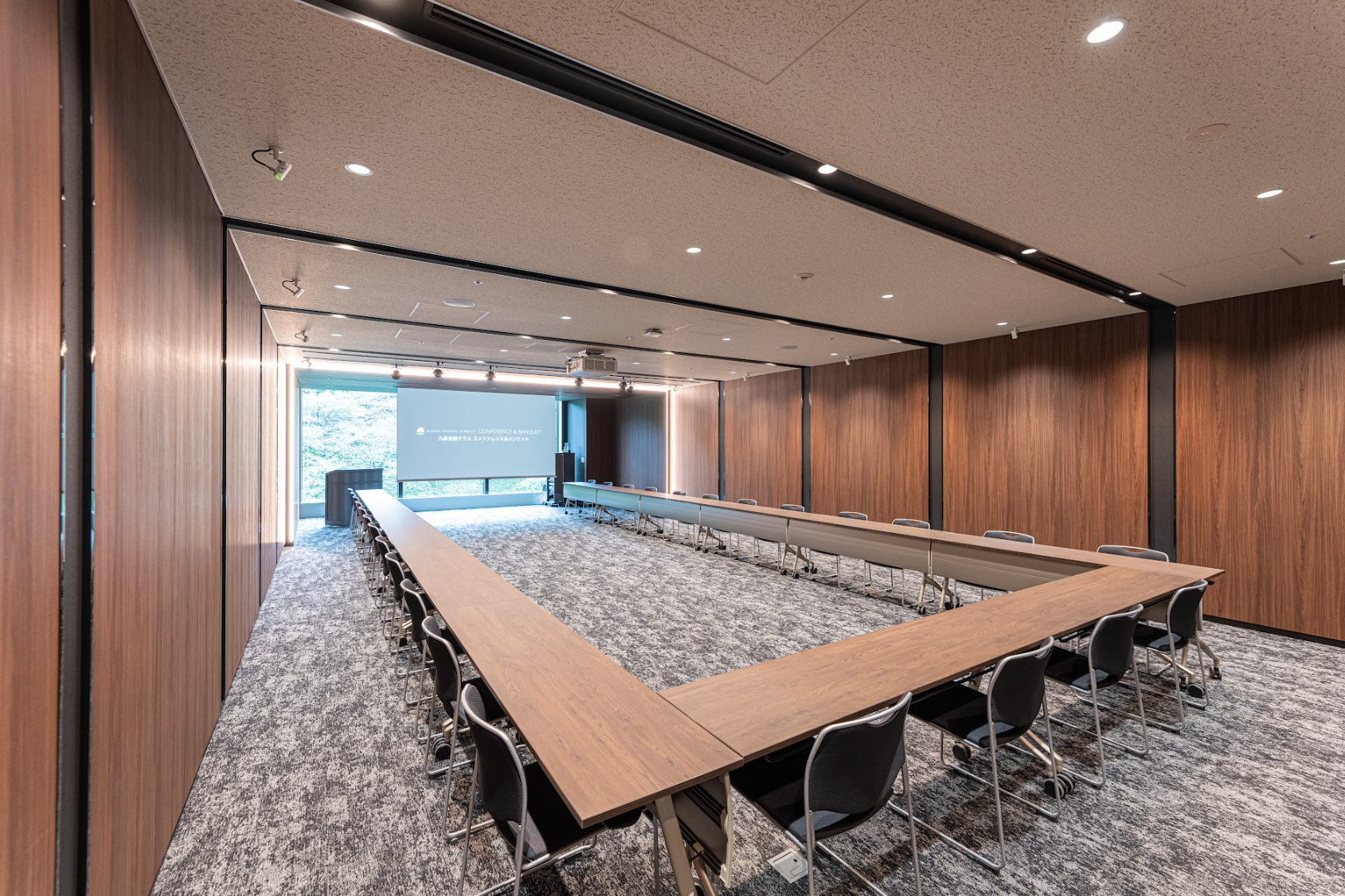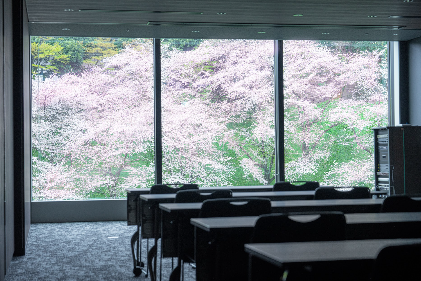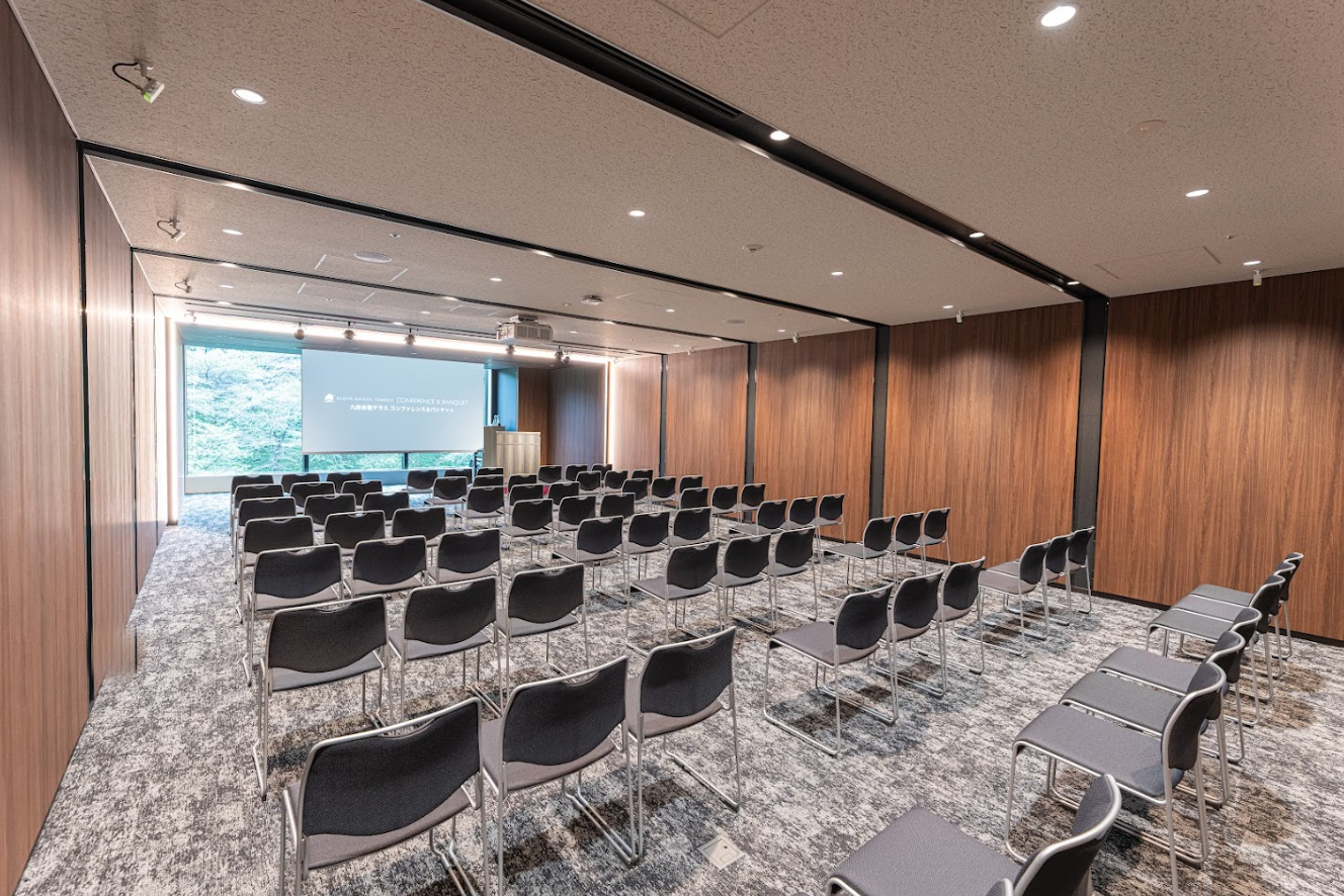 セミナーや会議、懇親会等、用途を選ばない快適な空間。 会場の奥まで目が届きやすい、お濠の景色を望める景観の良い115㎡の中規模会場です。 超高速ネット回線(NURO)を導入しておりますので、オンラインイベントでも安心してご利用いただけます。 ステージ・演台・司会台と音響機材一式が付帯、特徴的な間接照明がプレゼンテーションを印象付けます。
