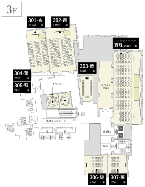 「社内会議」や「控室」にも使いやすい隣接する「305-藍」と同タイプの2部屋。