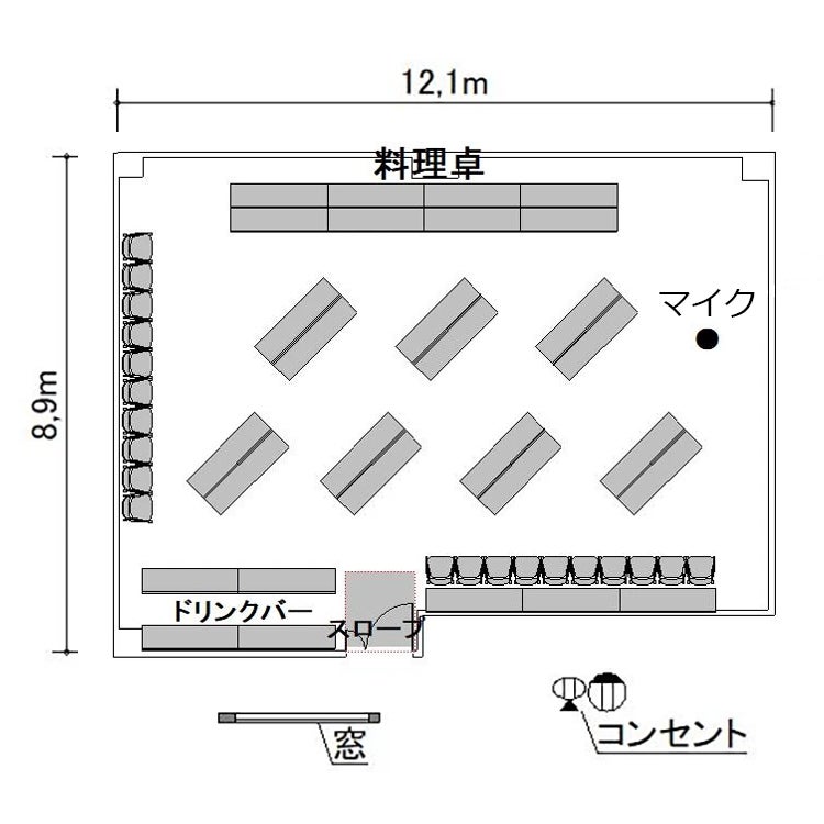 ※オプションサービス・備品、レイアウトを変更される場合は、ご利用日の3営業日前までにご連絡ください。