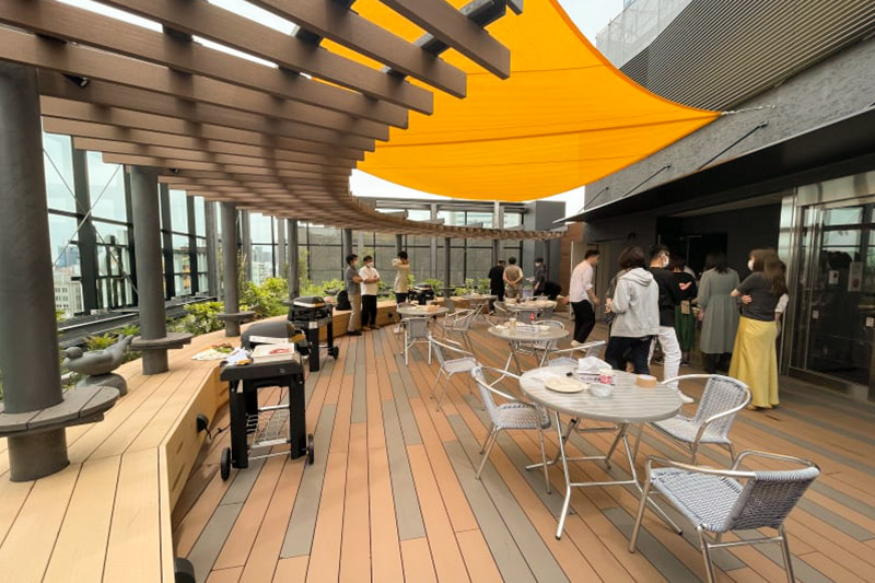 駅チカで100人収容の多目的なスタジオ。スタジオは飲食可能な上、ビル屋上での貸し切りバーベキューも可。