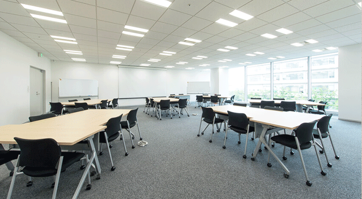 レイアウト変更や用途の幅に柔軟に対応できる、開放感あふれる空間設計が特徴
