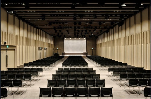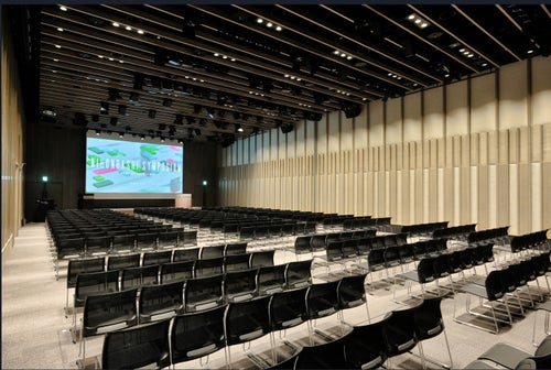 面積459㎡、天井高8m、最大シアター504席収容可能なホールと、中小7つの会議室